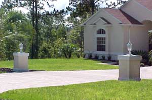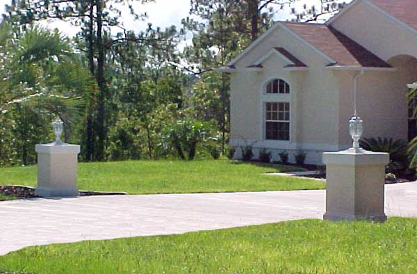 Textured Columns: Our textured columns are a simple way to add a little pizzazz to your driveway or the entrance to your home. Textured columns are constructed using the three-coat plastering system involving a scratch coat, lay-on coat, and finally the texture. We offer several choices of textures and